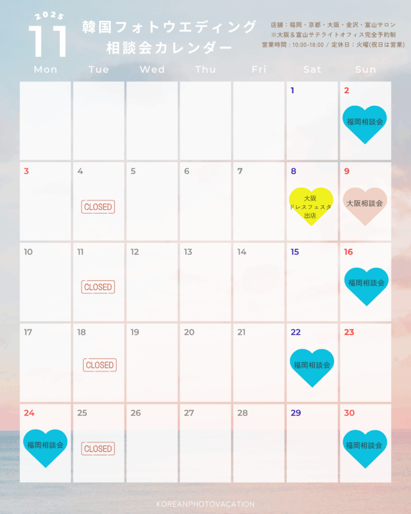 韓国フォトウエディング相談会11月スケジュールのお知らせ📝
