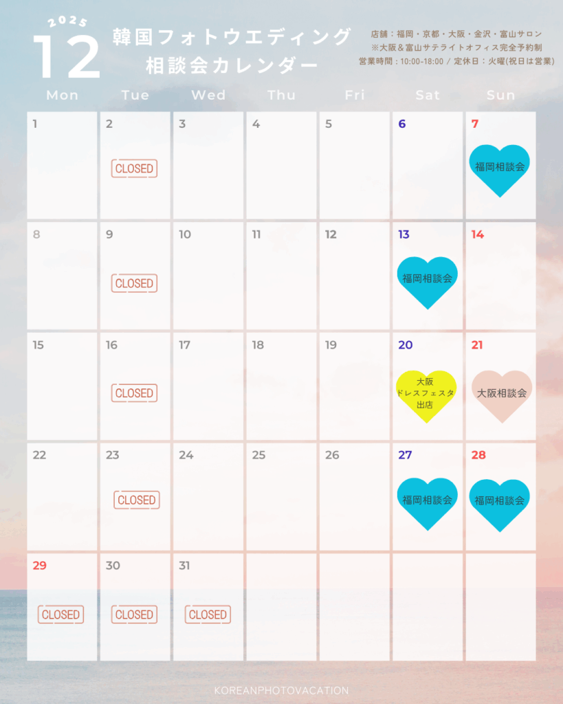 韓国フォトウエディング相談会12月スケジュールのお知らせ📝