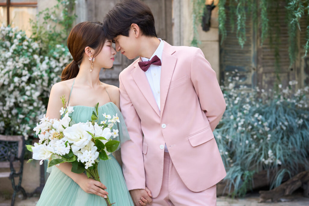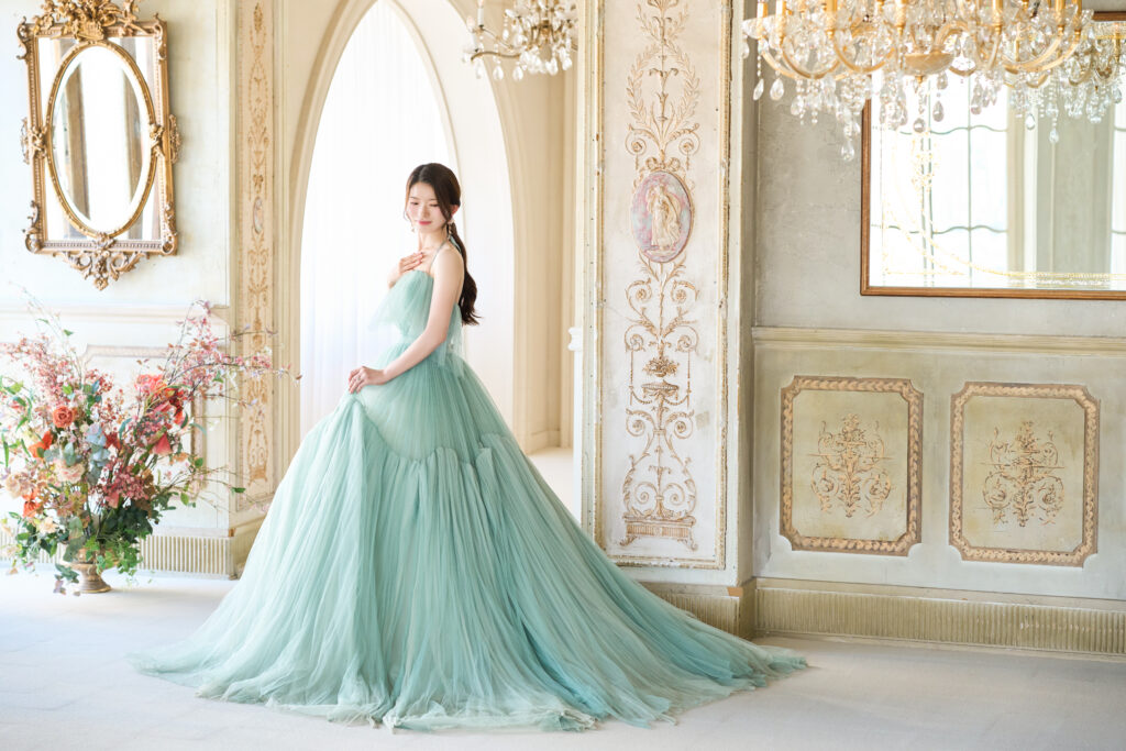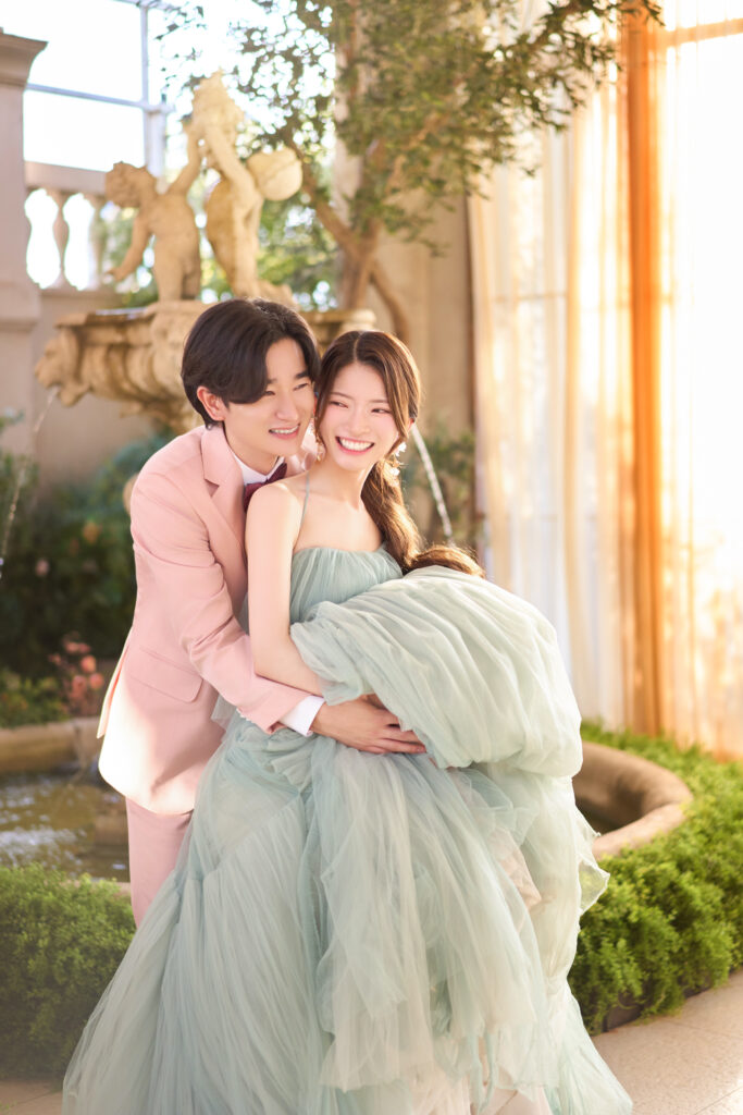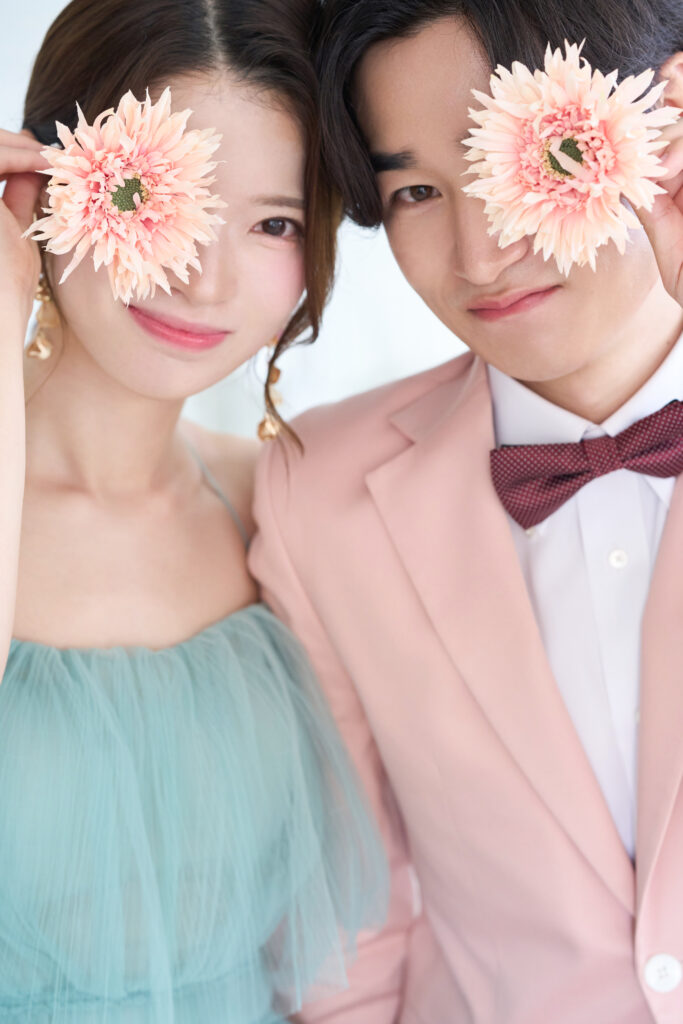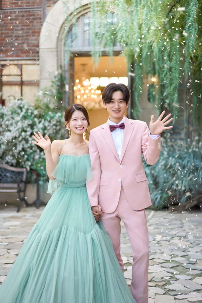 カラードレス×カラータキシードお二人様ともとってもお似合いです💚💗