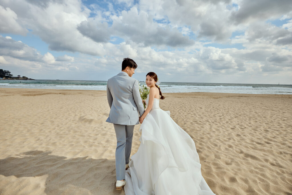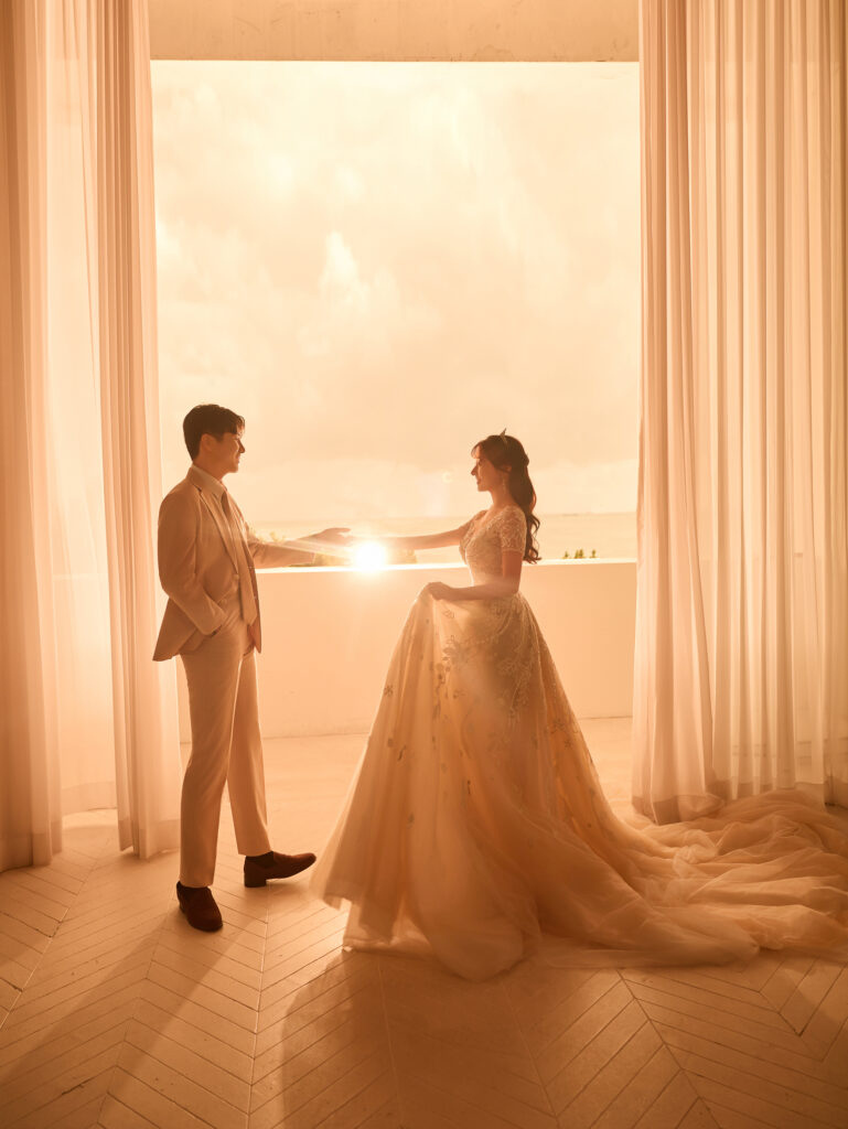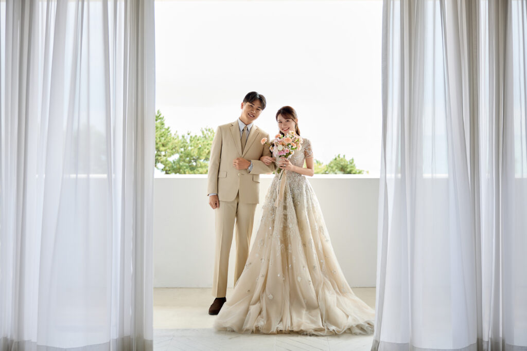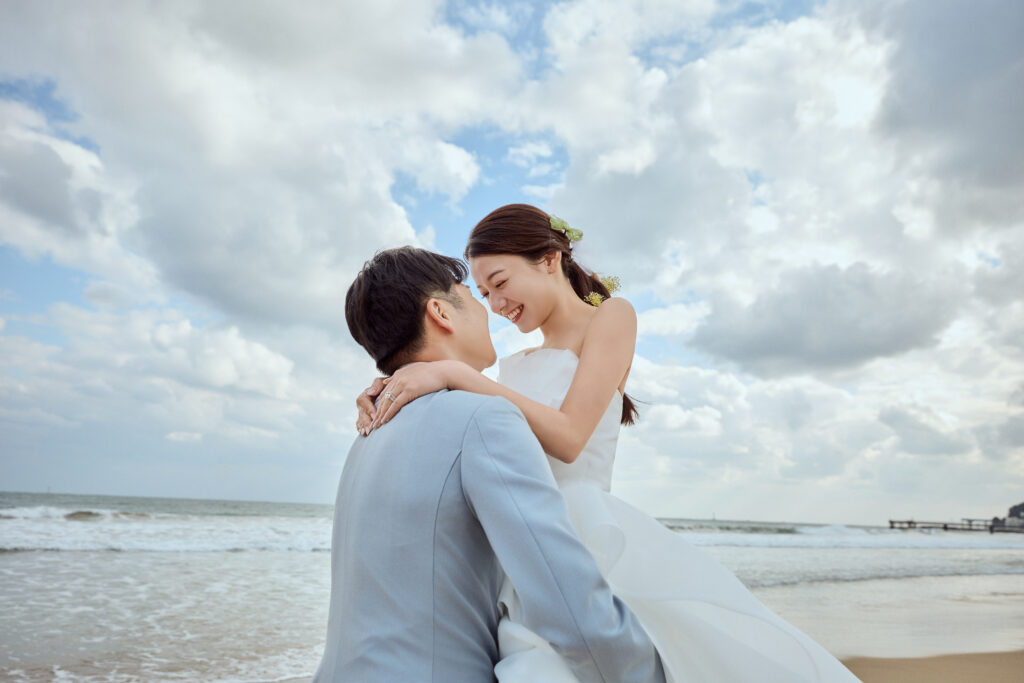 ドレスと明るい色のタキシードがビーチ撮影にもピッタリ!