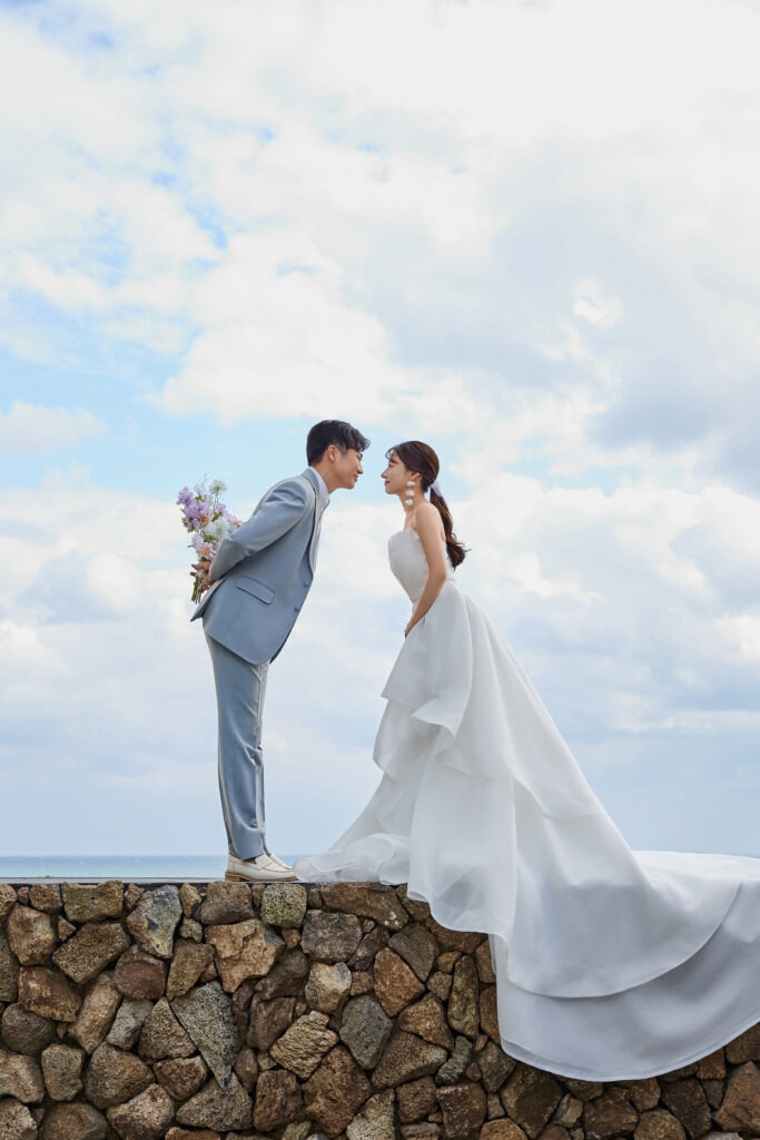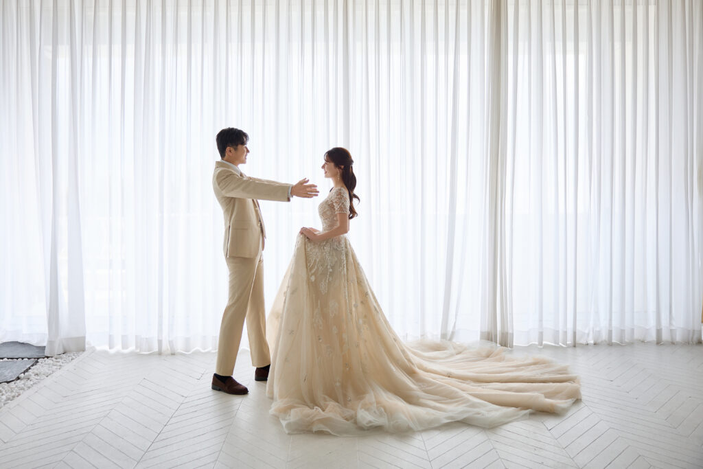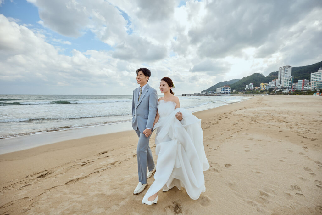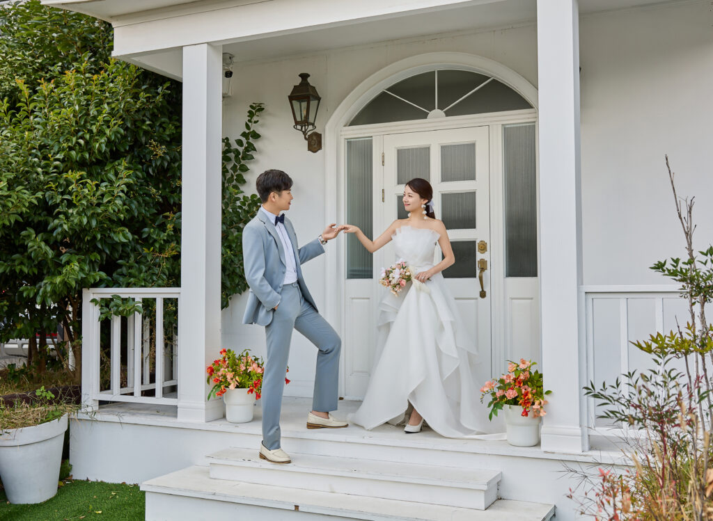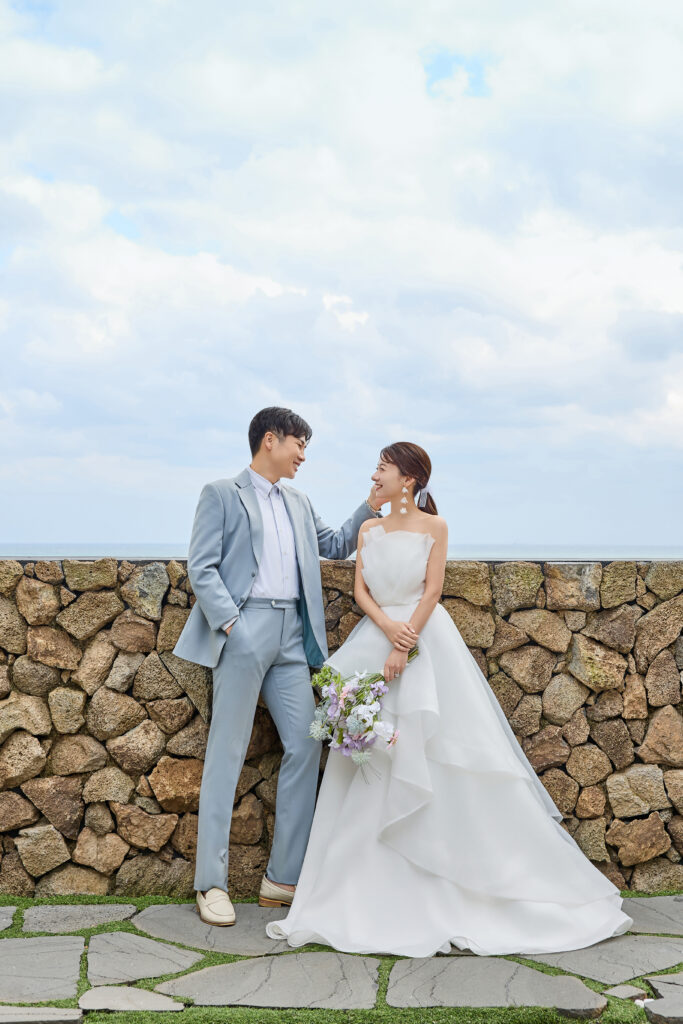 ドレスと明るい色のタキシードがビーチ撮影にもピッタリ!