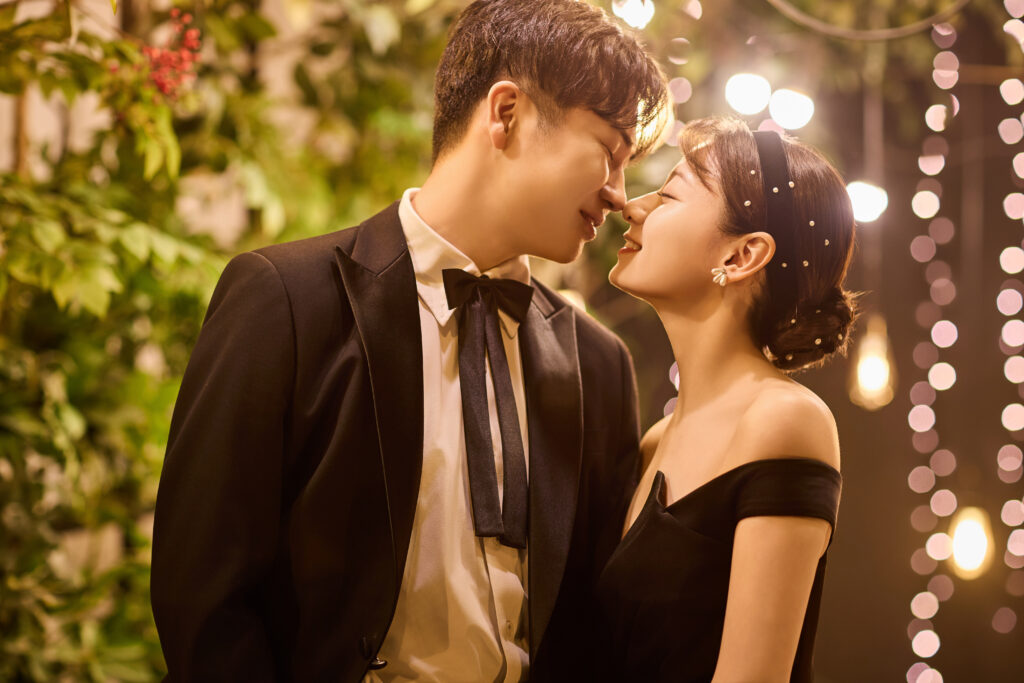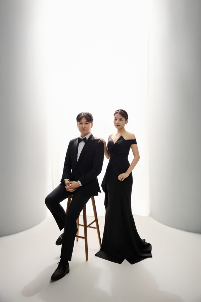 ブラックのカラードレスにはタキシードも最近流行りのリボンタイ🎀