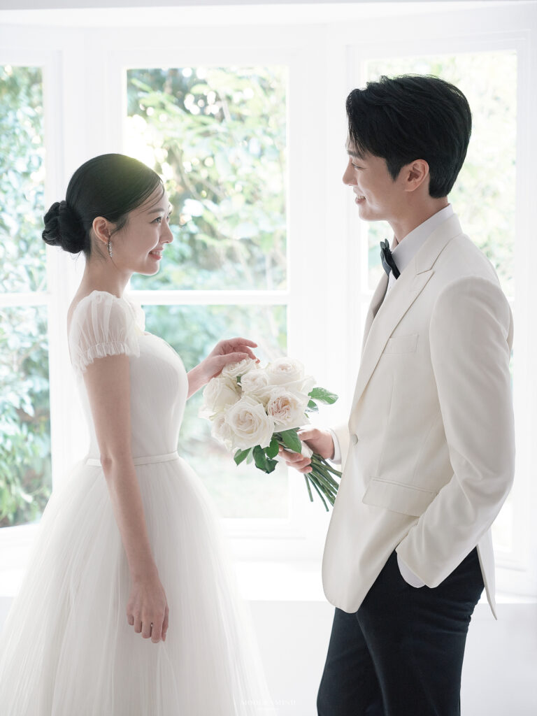 シンプルなショットは「フォトウエディング」感を演出🤍🩶🩷