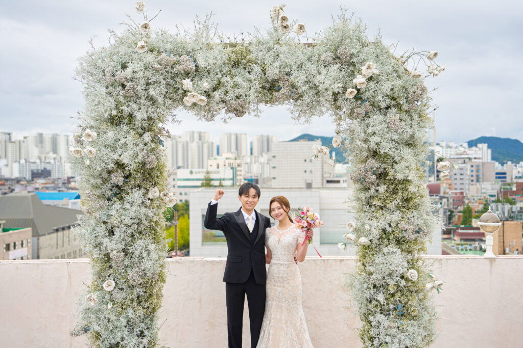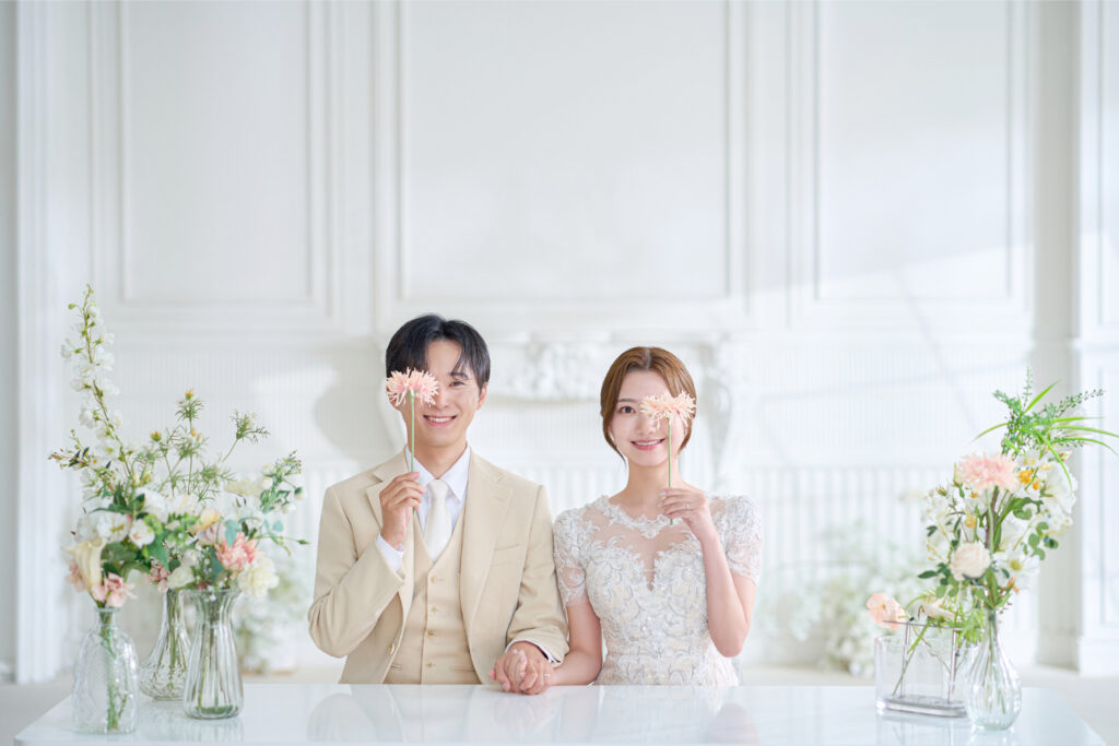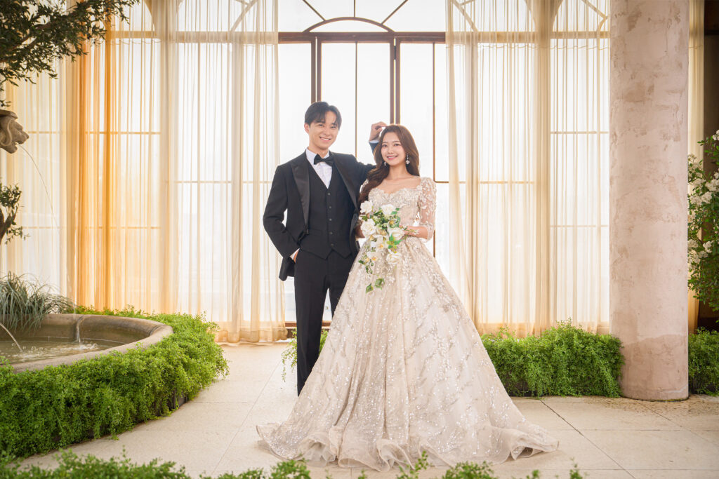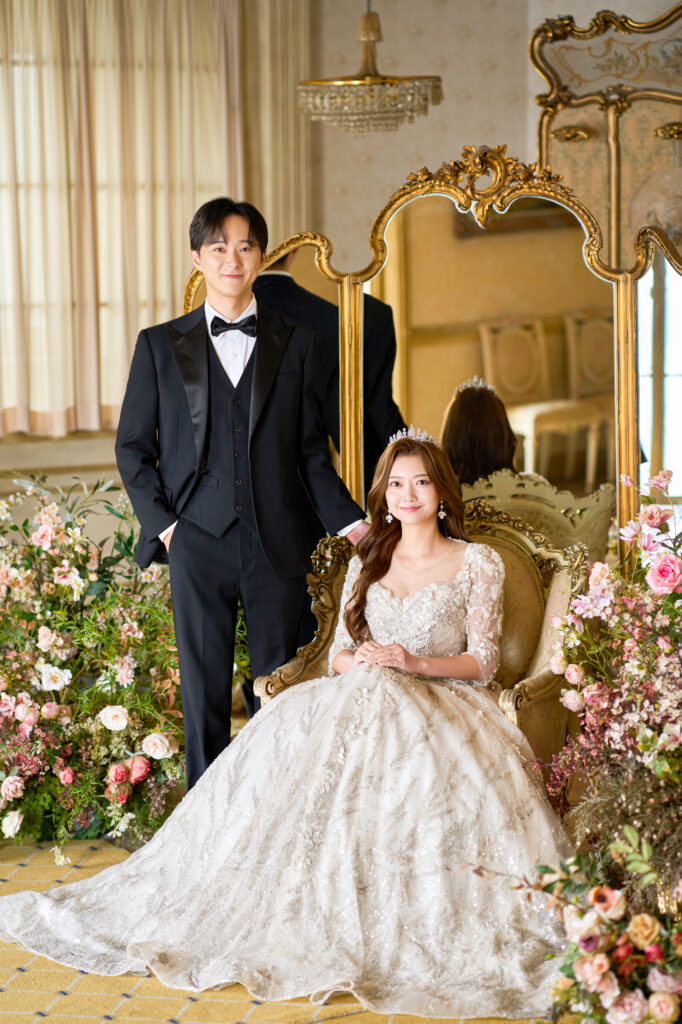 韓国っぽい華やかなドレスがとてもお似合い👰🤍