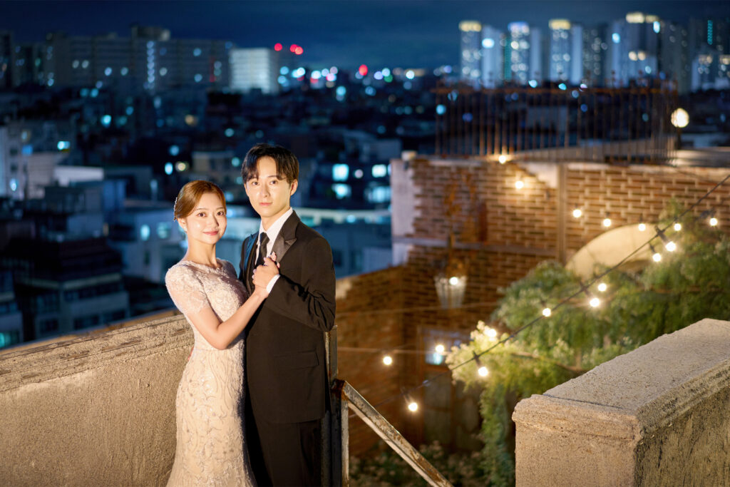 ドレスチェンジ後、日中~夜景まで屋上セットは様々なバリエーションが取れます🌼