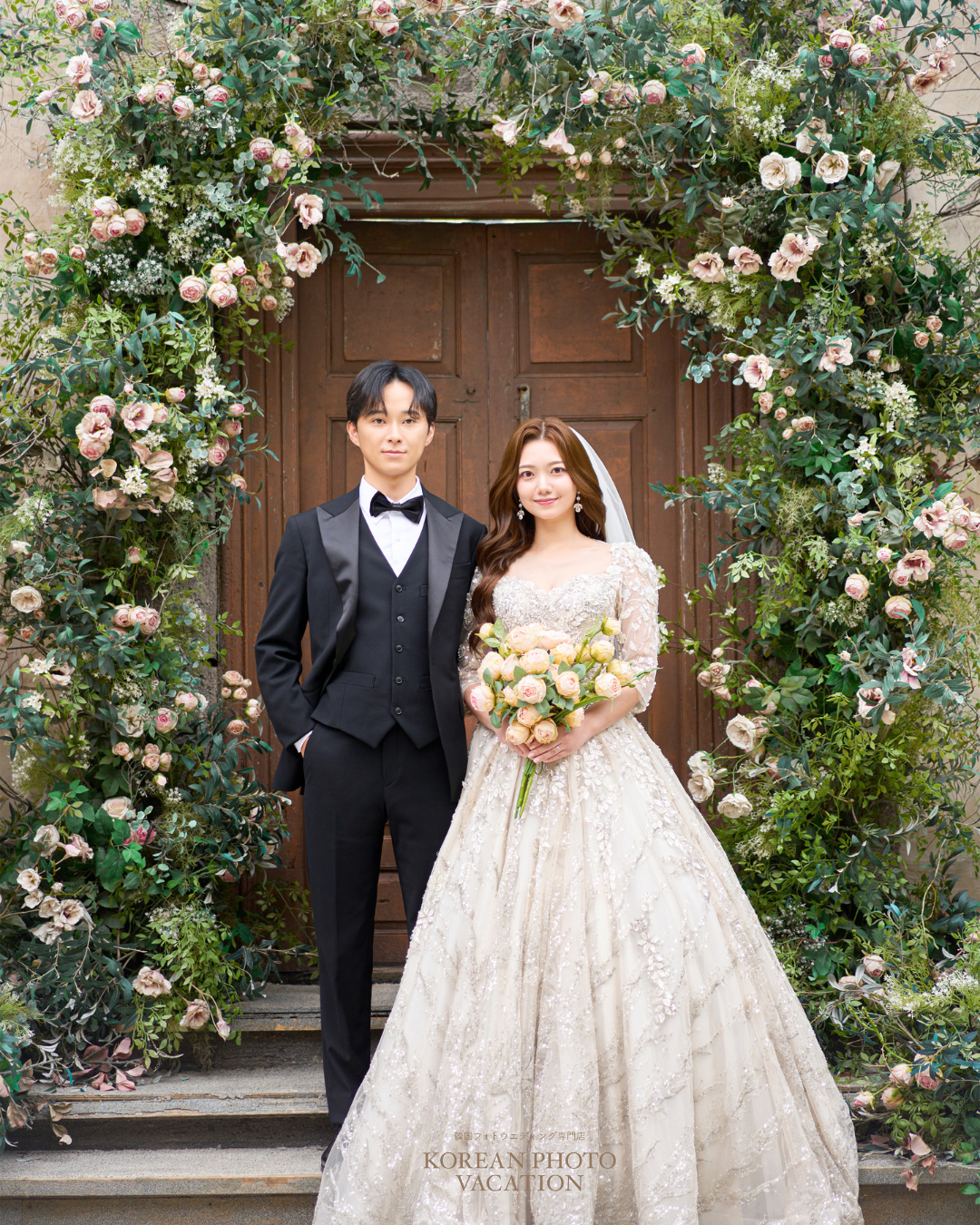 韓国っぽい華やかなドレスがとてもお似合い👰🤍