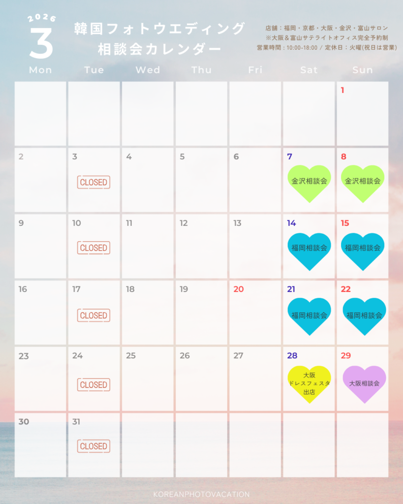 韓国フォトウエディング相談会3月スケジュールのお知らせ📝