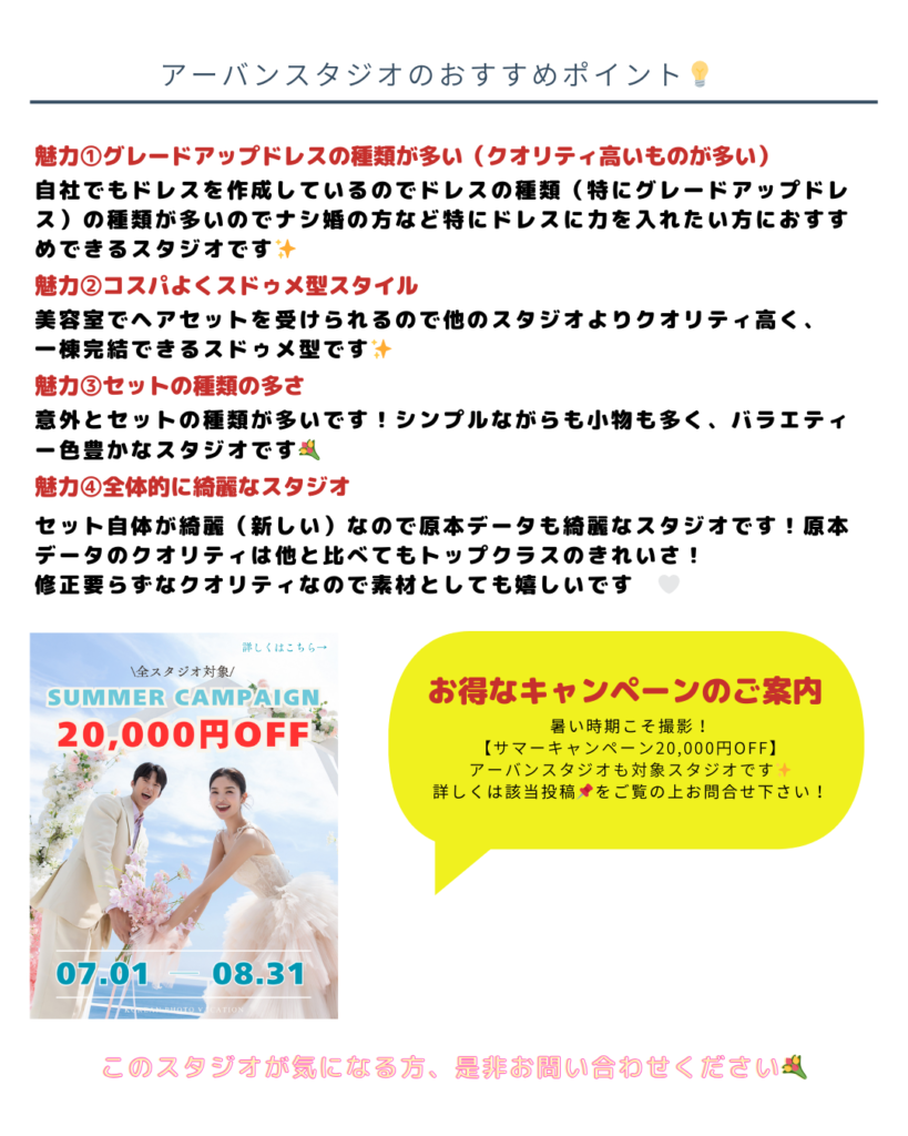 アーバンスタジオは結婚式でも実際に使っているほどのクオリティ高いドレスもたくさんあります✨