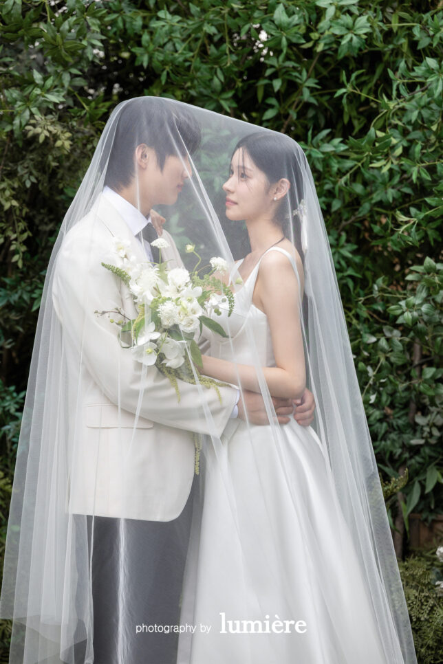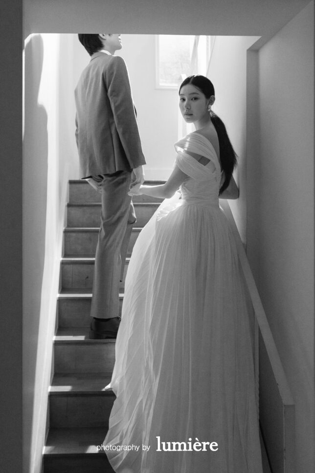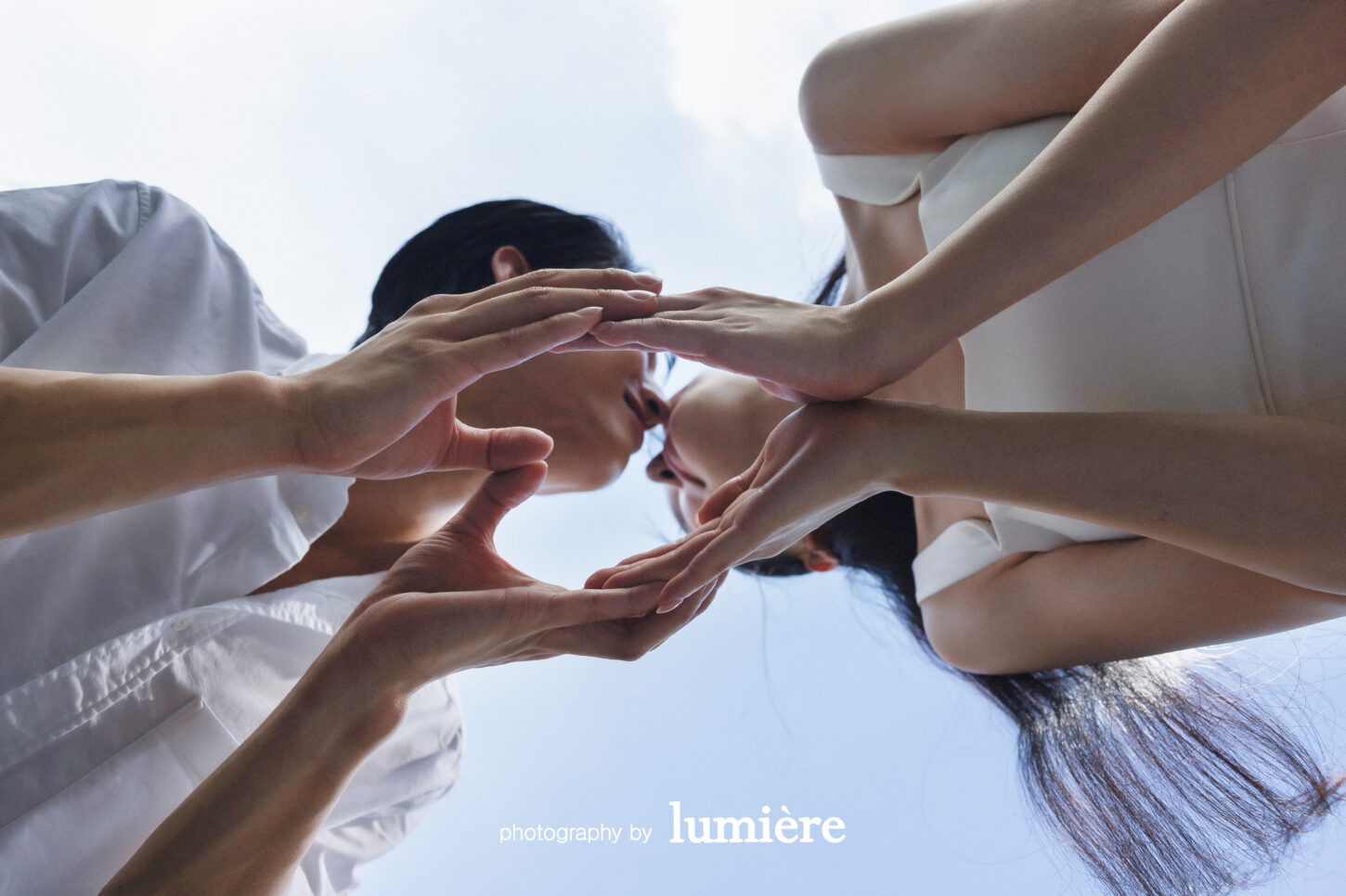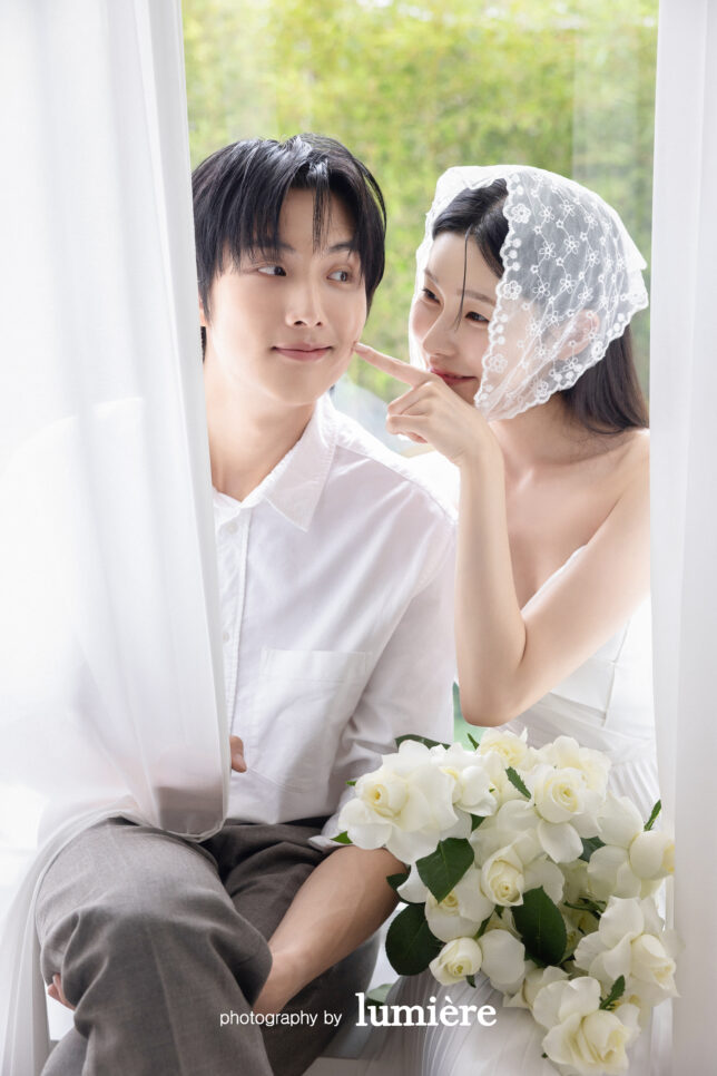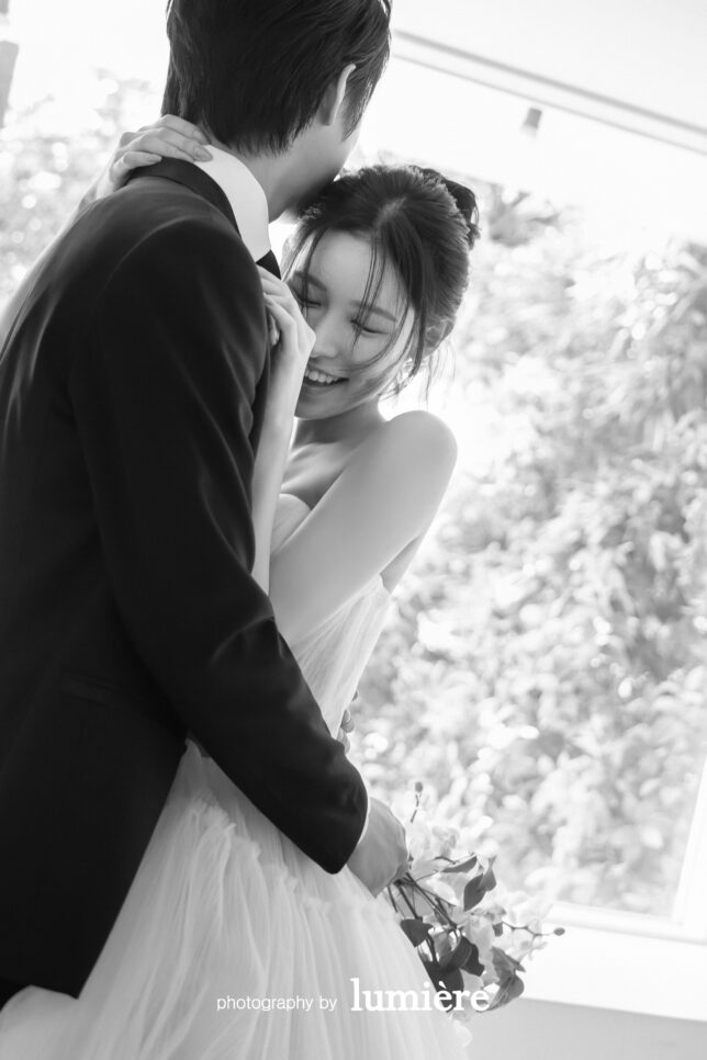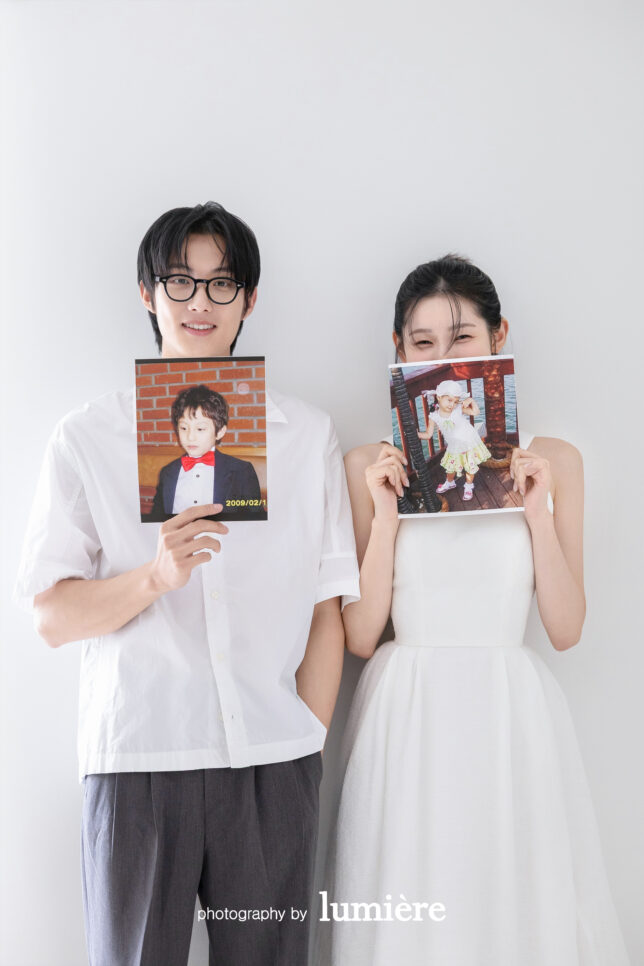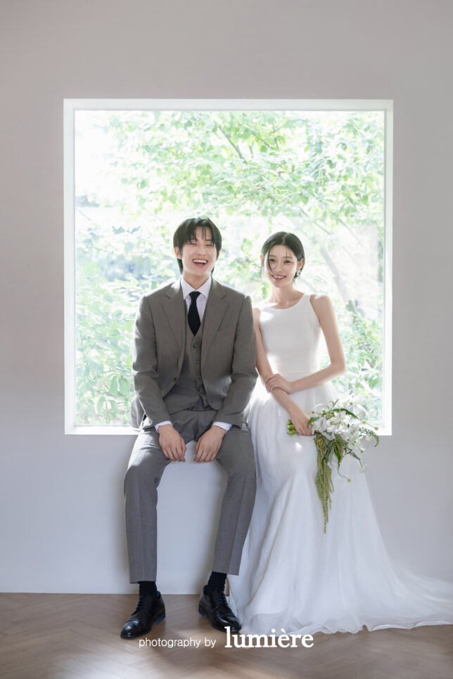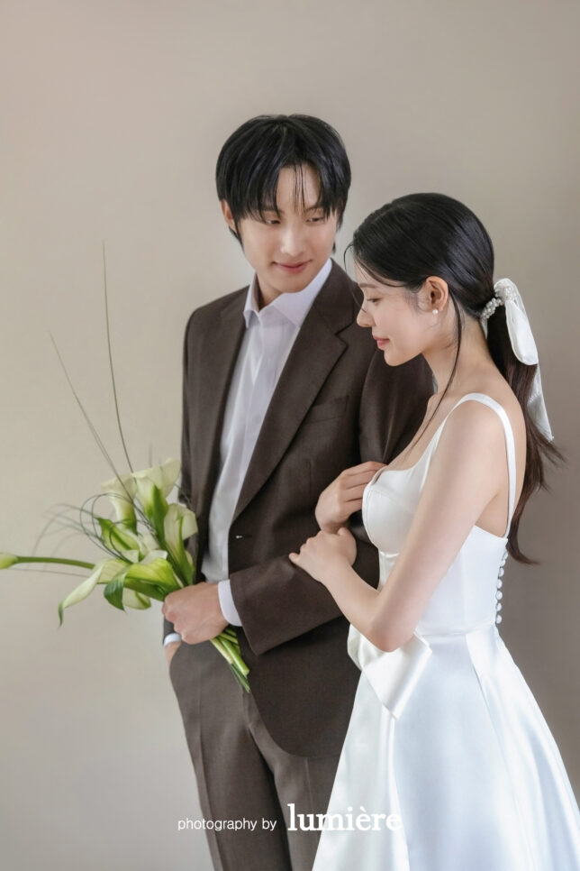 ドレスサロンのドレスを3つ着用でき、シンプルながらも人物中心のきれいな写真が撮れます。