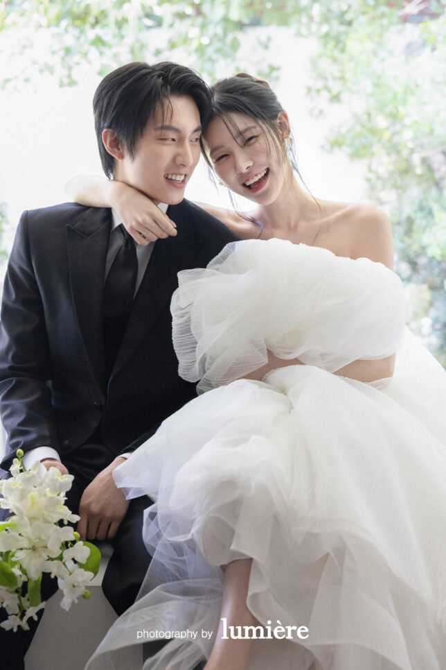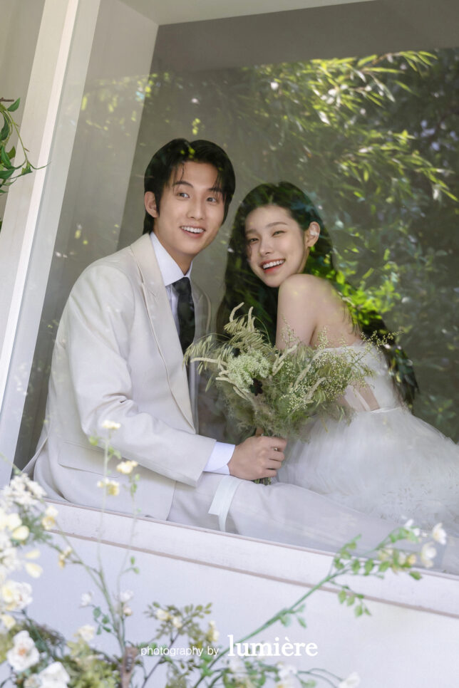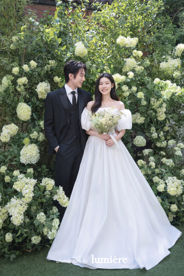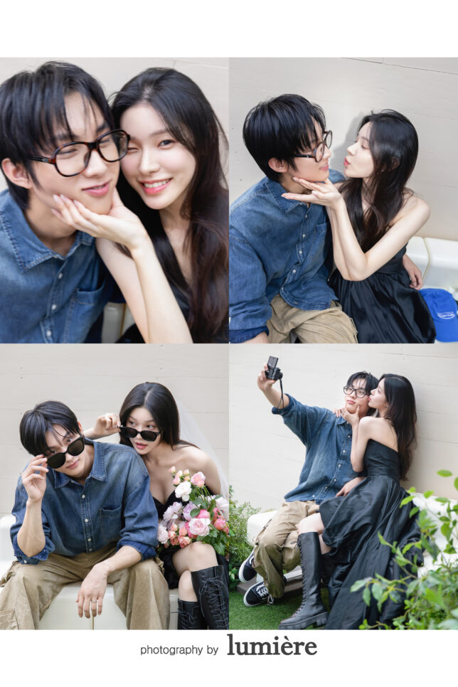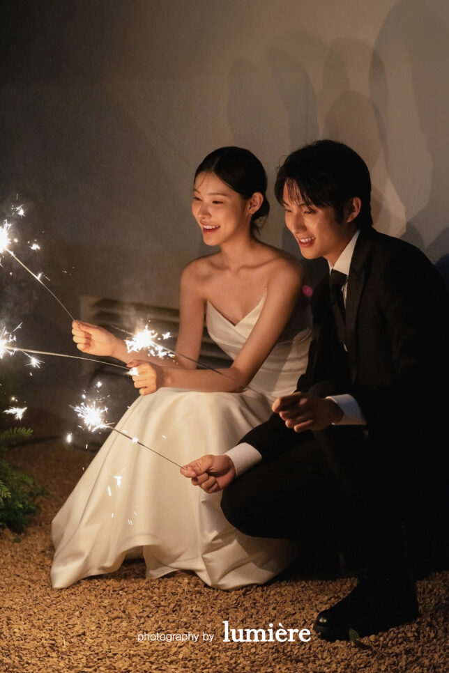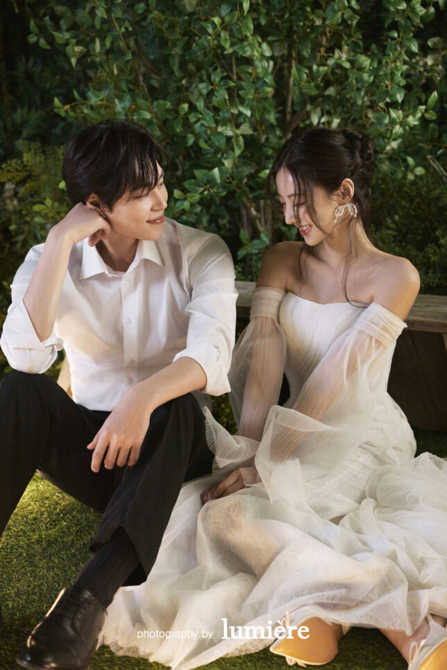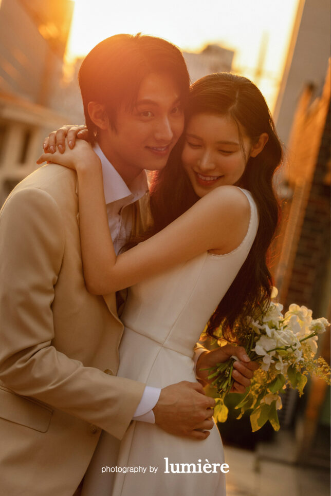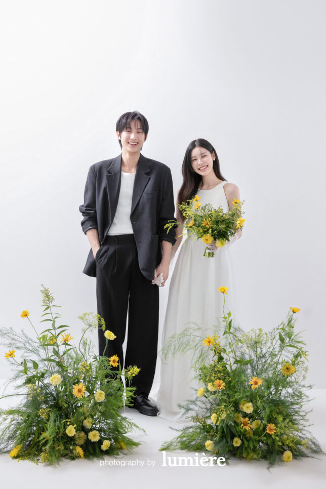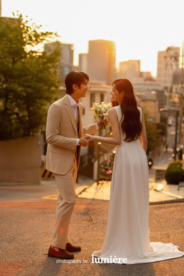 ドレスサロンのドレスを3つ着用でき、シンプルながらも人物中心のきれいな写真が撮れます。