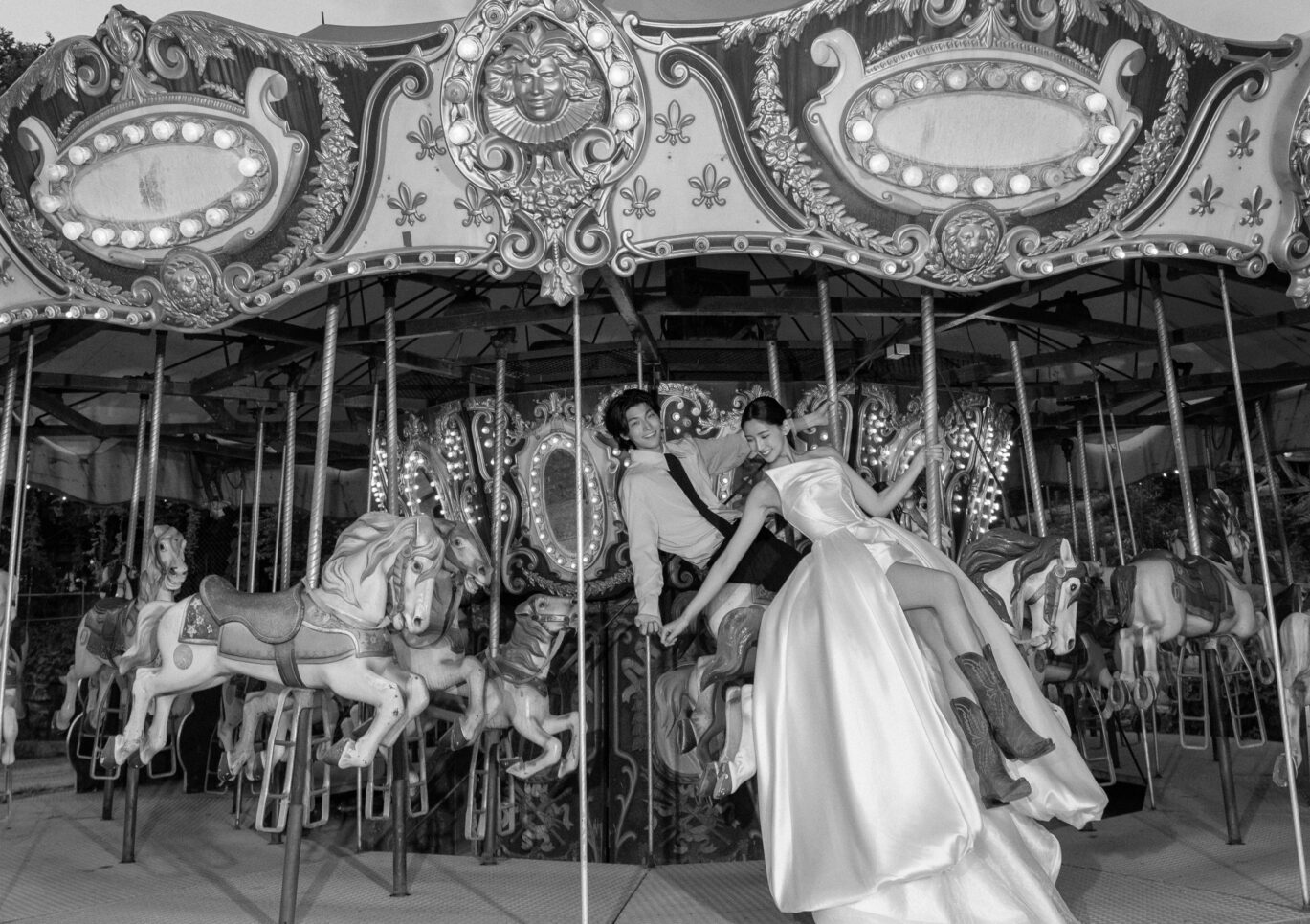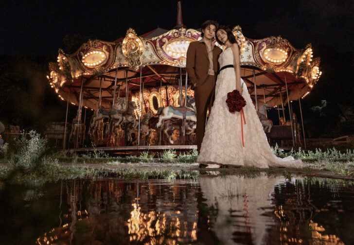 ここでしか撮れないメリーゴーランドの写真。昼と夜では違った雰囲気の写真。